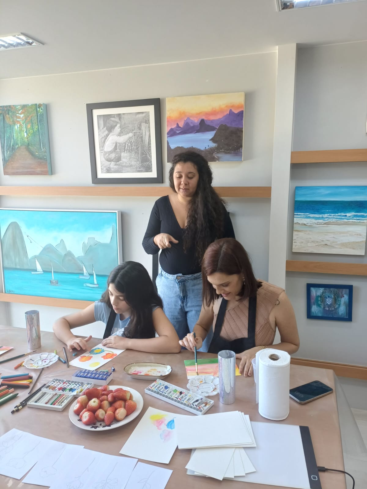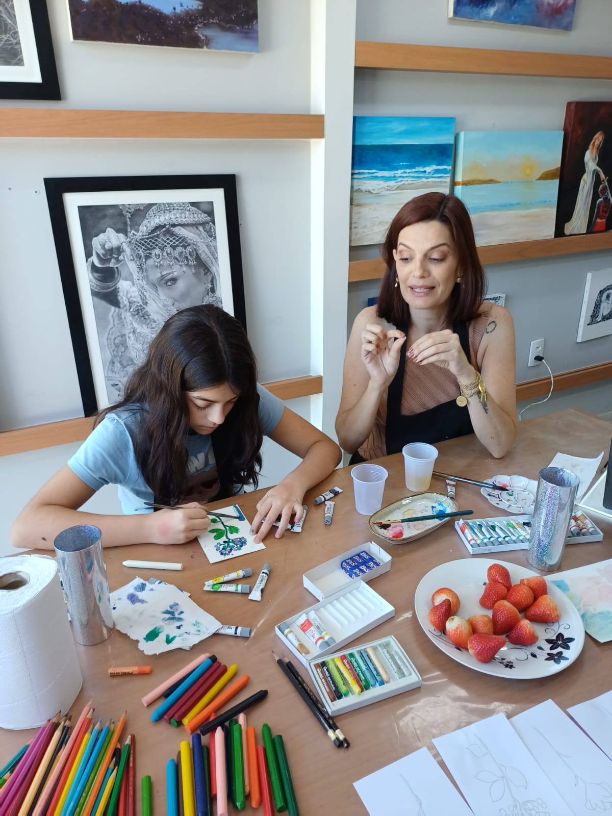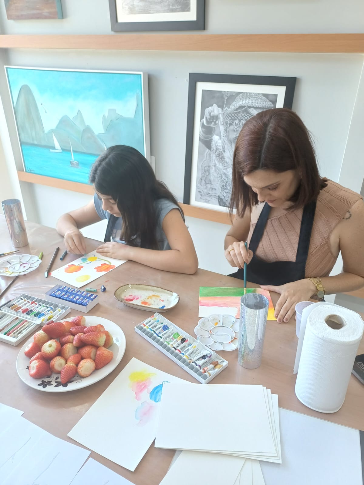 Tive a alegria de receber no meu ateliê duas queridas: Jacke e Rebeca, mãe e filha que vieram viver juntas um momento de arte, afeto e conexão.