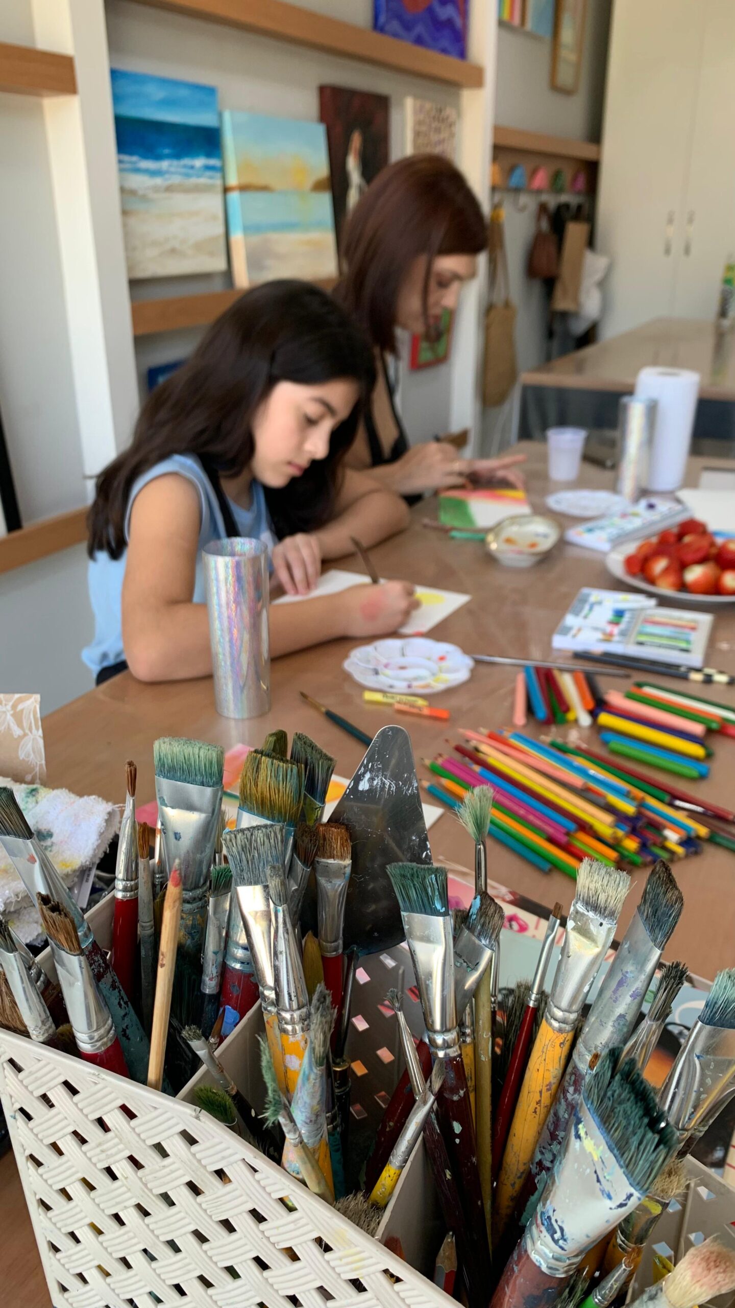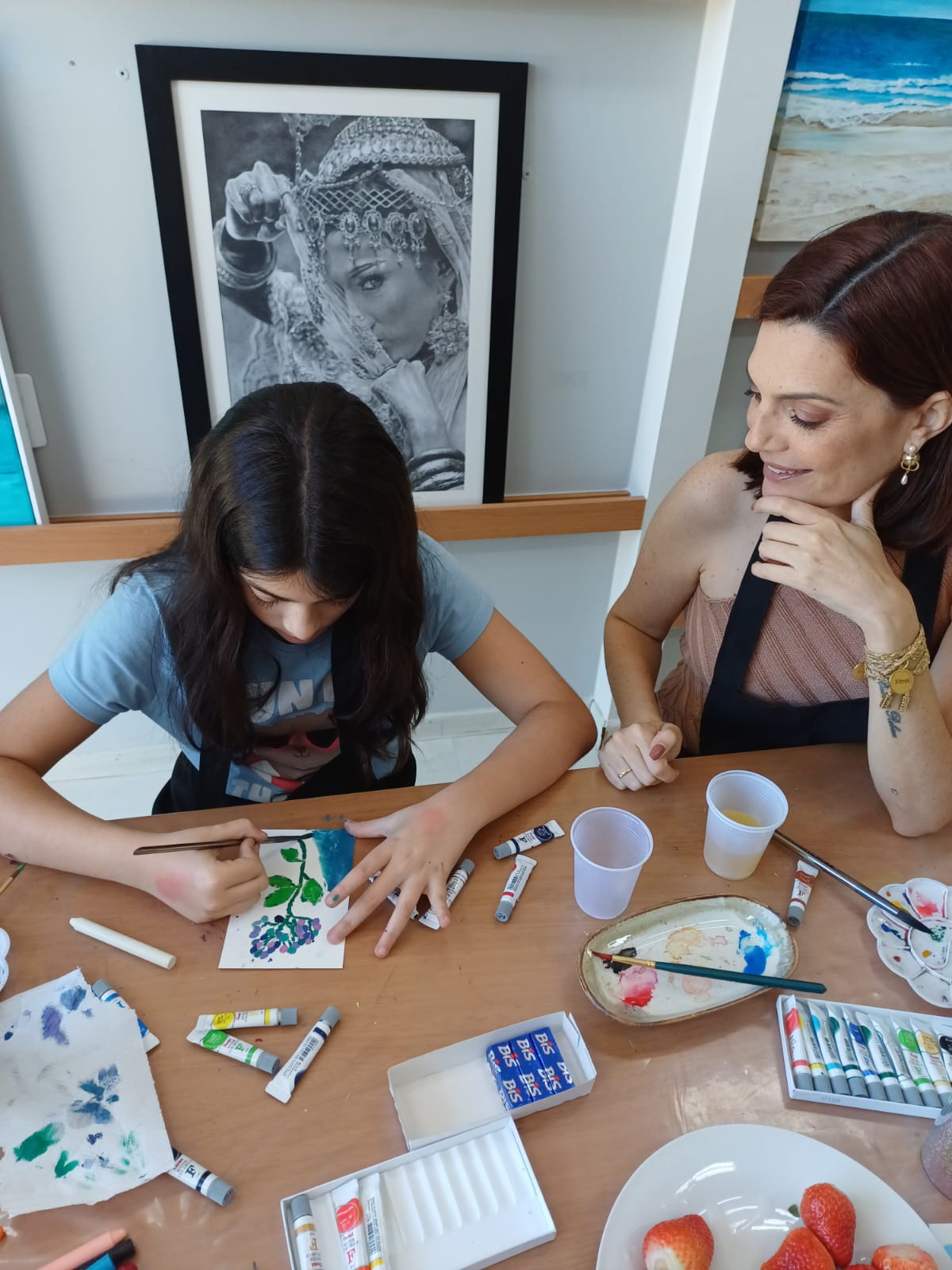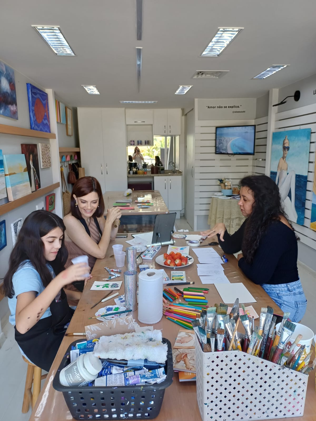 Tive a alegria de receber no meu ateliê duas queridas: Jacke e Rebeca, mãe e filha que vieram viver juntas um momento de arte, afeto e conexão.